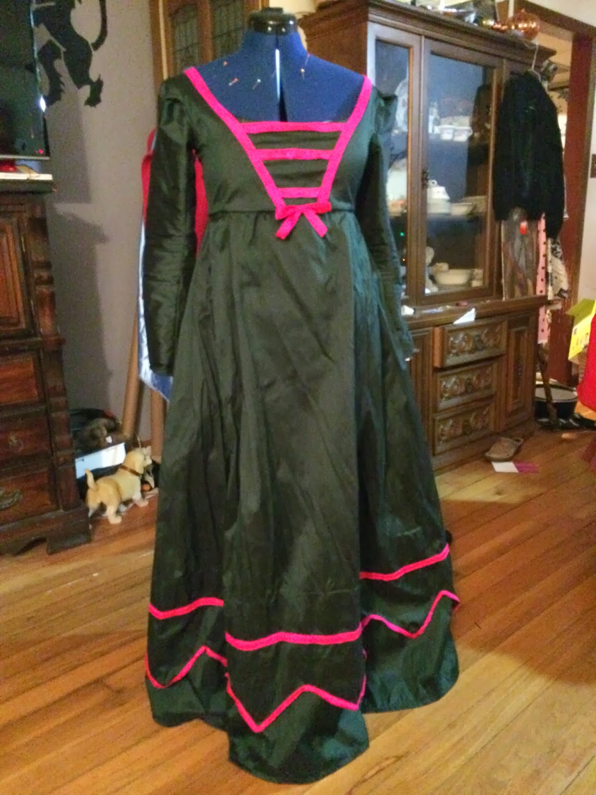 How historically accurate is it? ~70% ish. It's machine sewn and all silk dupioni so that knocks a lot of points off. However, the cut is accurate for the time period.